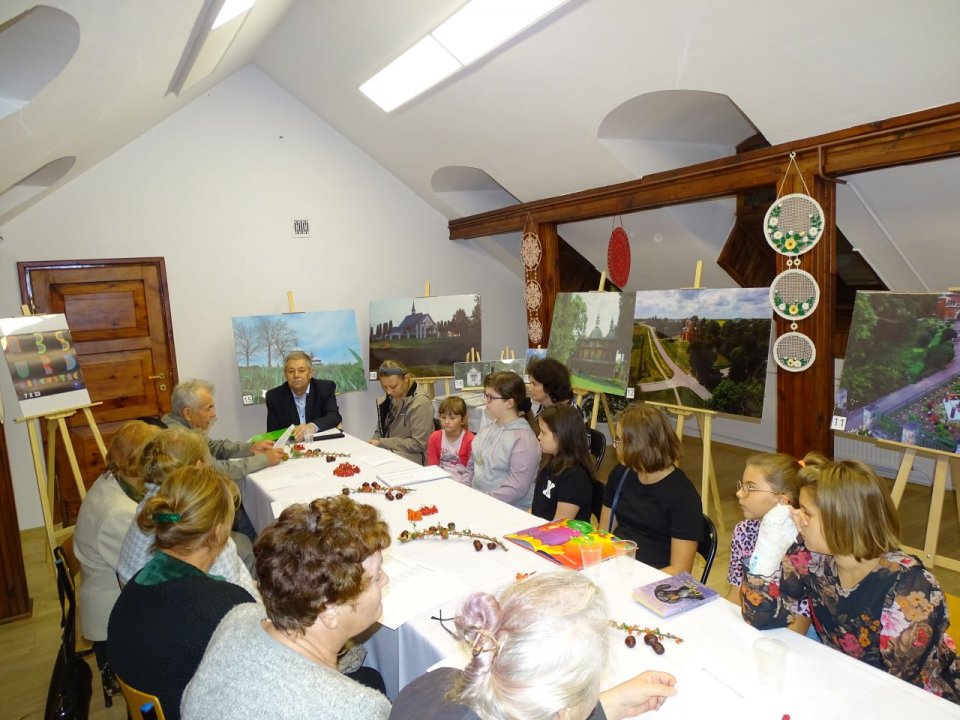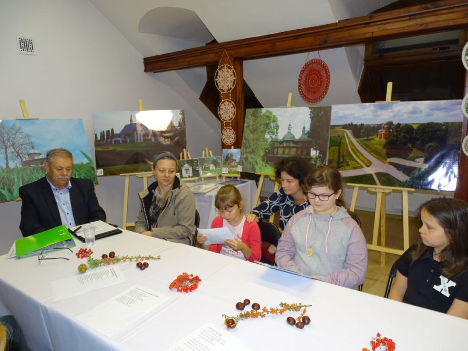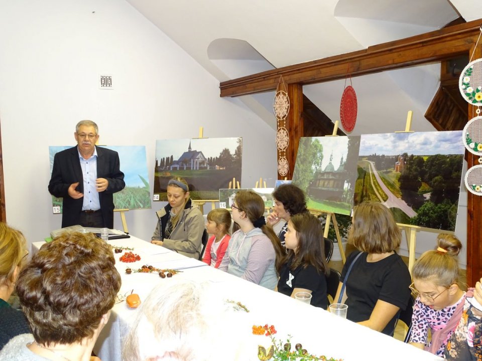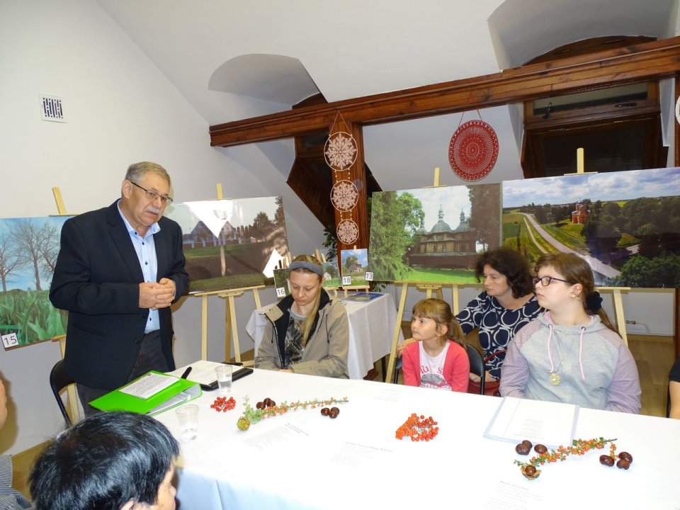 Następnie, znany regionalista, Pan Ryszard Wieczorek z Kryłowa, w niezwykle ciekawy sposób przybliżył kilka sylwetek ludzi związanych i zasłużonych dla naszej najbliższej okolicy: Mieczysława Piwkowskiego, Michała Karowicza i Sylwestra Drączkowskiego. Zebrani mogli też obejrzeć różne stare dokumenty, fotografie, wycinki z gazet dotyczące wymienionych osób i znanych nam miejsc. To była niezwykła lekcja historii dla tych najmłodszych jak i dorosłych. Spotkanie odbywało się na tle wystawy fotografii zabytków z terenu naszej gminy, przygotowanej w ramach projektu przez nauczycieli miejscowej szkoły: P. Emilii Kopera i P. Jarosława Demendeckiego.