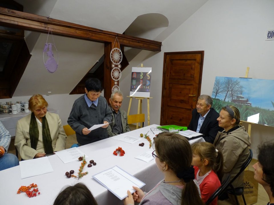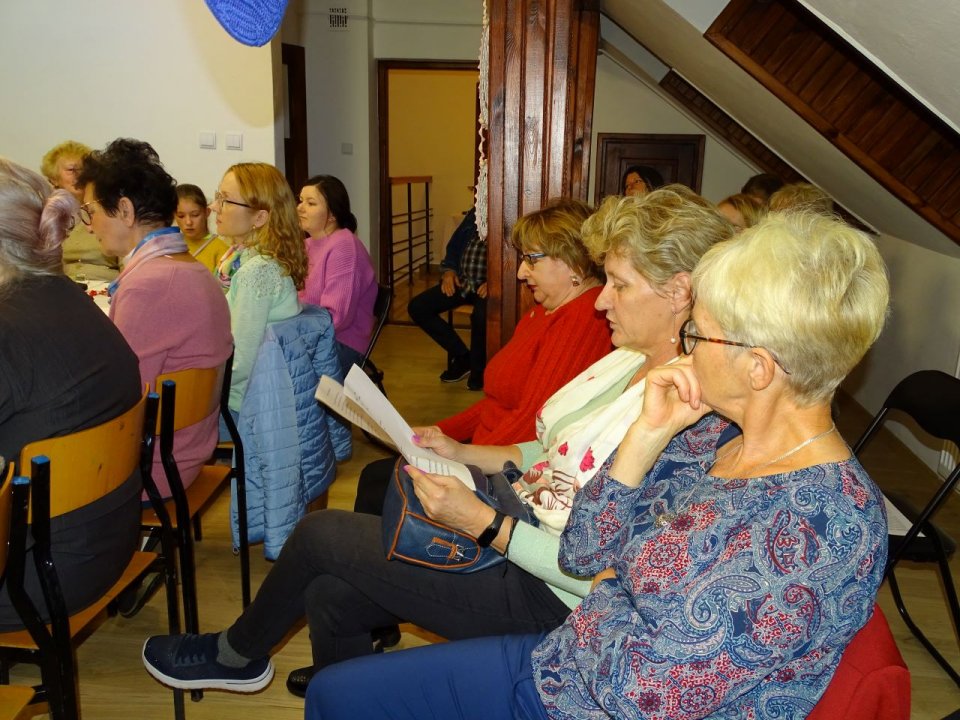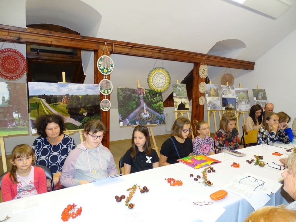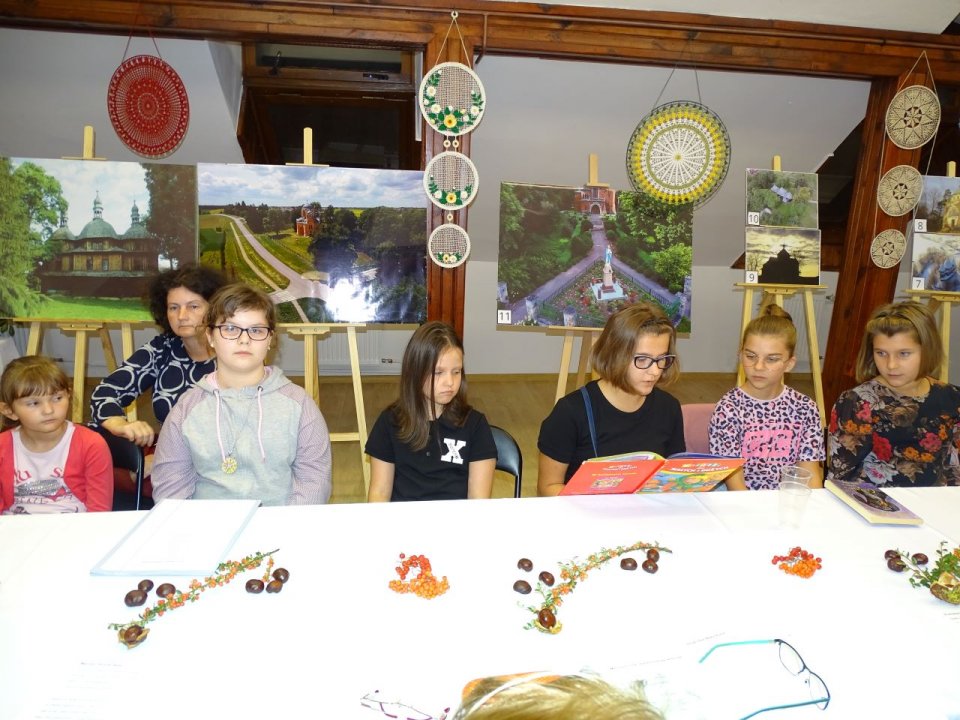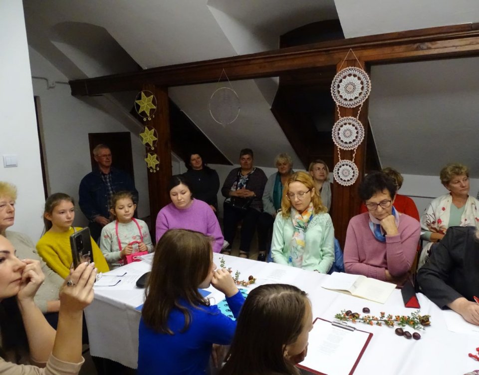 Następnie, znany regionalista, Pan Ryszard Wieczorek z Kryłowa, w niezwykle ciekawy sposób przybliżył kilka sylwetek ludzi związanych i zasłużonych dla naszej najbliższej okolicy: Mieczysława Piwkowskiego, Michała Karowicza i Sylwestra Drączkowskiego. Zebrani mogli też obejrzeć różne stare dokumenty, fotografie, wycinki z gazet dotyczące wymienionych osób i znanych nam miejsc. To była niezwykła lekcja historii dla tych najmłodszych jak i dorosłych. Spotkanie odbywało się na tle wystawy fotografii zabytków z terenu naszej gminy, przygotowanej w ramach projektu przez nauczycieli miejscowej szkoły: P. Emilii Kopera i P. Jarosława Demendeckiego.
